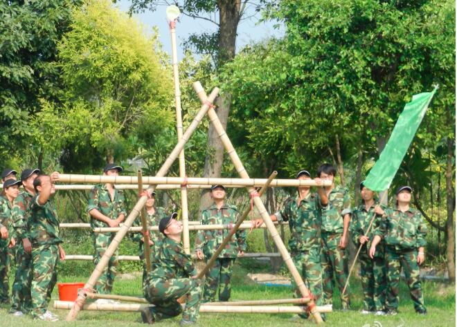 北京拓展训练项目描述- 罗马炮架又叫罗马炮车、罗马炮战,把大团队分成若干小团队,在一个固定的战场里面,利用竹木绳索等指定的器材扎成罗马炮架。此项目要求严密的组织配合,每个人都要发挥个人的能力,充分的体现大家的想象力,在最短的时间内打造一部坚固、实用的攻城战车。 所有队员必须进入指定的活动区域,利用扎好的罗马炮架,发送水弹攻击对方对员。分组团队先通过一系列的考验(考验由3-5个拓展项目组成),获得资源(竹子九长一短,九根长绳。一把大勺,若干个气球水弹),然后在一个固定的战场利用资源架起一尊古罗马炮架来发射水弹攻击别的团队,得分多者为胜。
